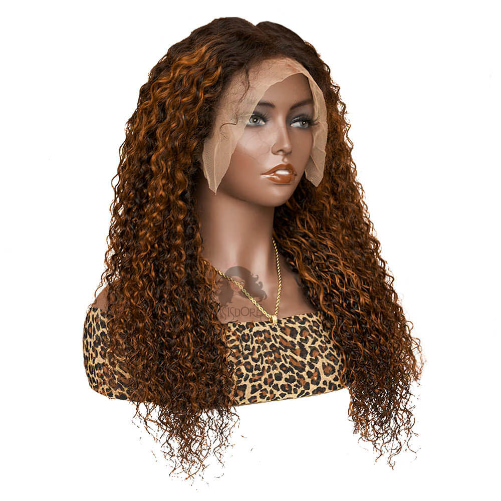 Check out our 1B/30 Highlights Jerry Curly Human Hair Lace Front Wig, this wig has beautiful black mixed with medium auburn color and jerry curls. Plus, it is a 13x4 lace front wig with a natural-looking hairline. Let's get creative with this auburn brown highlight jerry curly hair wig!